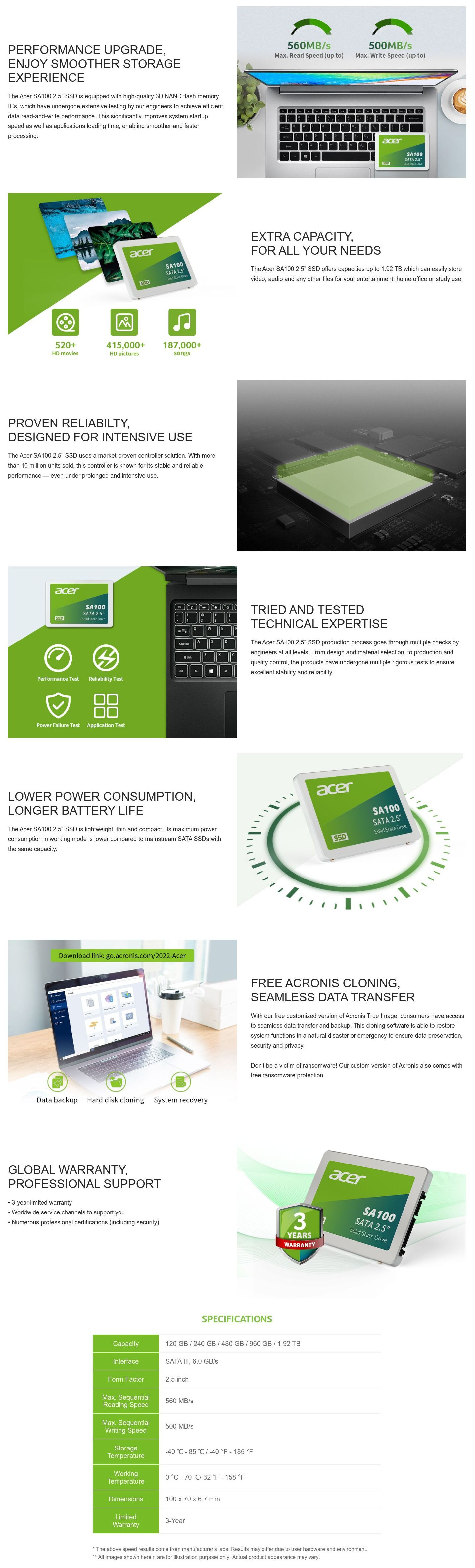 ACER 2.5 SATA SSD SA100- 240GB [SBN:NO NILAI:NO MELAKA:NO HPS:NO]
