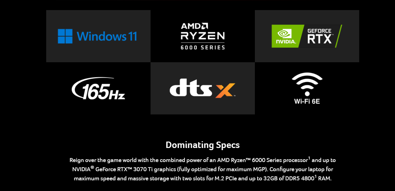- NVIDIA® GeForce® RTX3050Ti 4GB GDDR6 memory