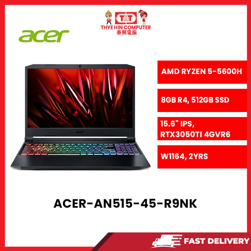ACER-AN515-45-R9NK-AMDRYZEN5-5600H,8GBR4,512GBSSD,RTX3050TI4GVR6,15.6″IPS,W1164,2YRS [SBN:NO NILAI:NO MELAKA:NO HPS:NO]