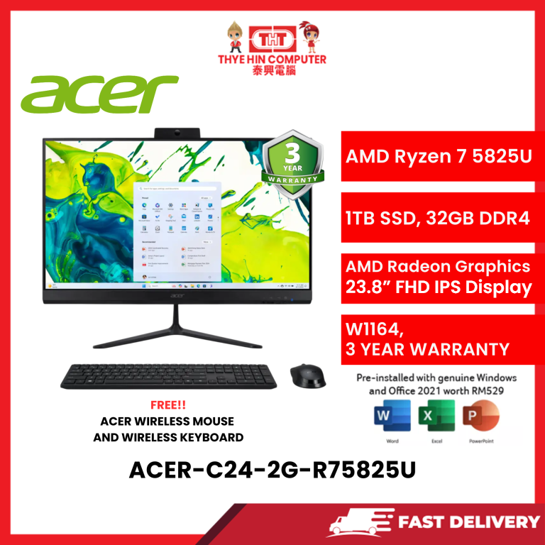 ACER-C24-2G-R75825U-AMDRYZEN7-5825U,32GBR4,1TBSSD,23.8″FHD,AMDRADEON,W1164,3YRS,H&S [SBN:YES NILAI:NO MELAKA:NO HPS:NO]