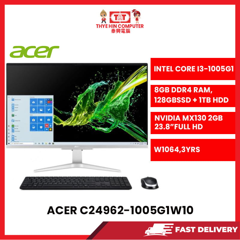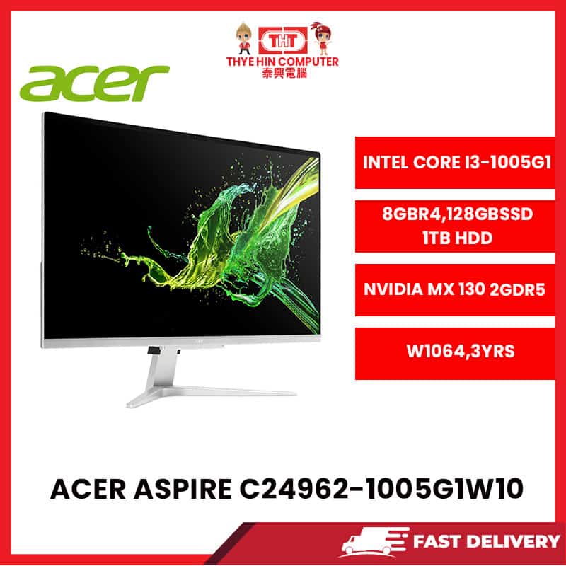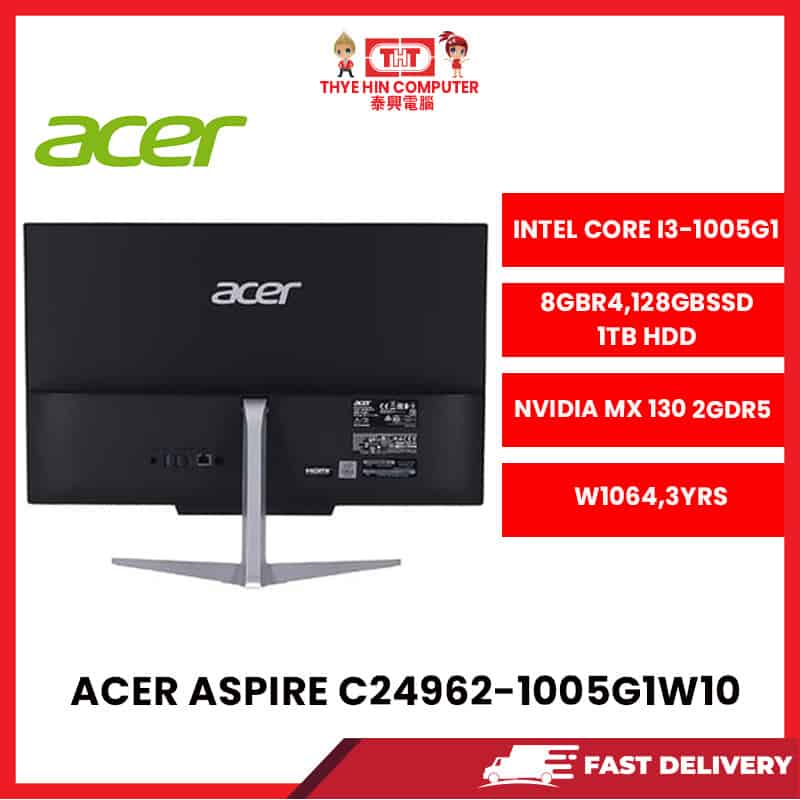Acer C24962-1005G1W10 23.8″FHD ALL IN ON DESKTOP (CORE i3-1005G1, 8GB DDR4,128GB SSD + 1TB HDD nVIDIA MX 130 2 GB W10) [SBN:NO NILAI:NO MELAKA:NO HPS:NO]