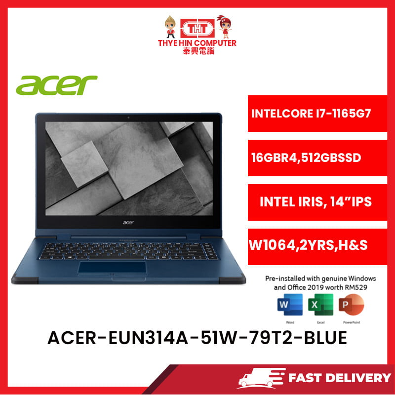 ACER-EUN314A-51W-79T2-GRN-INTELCOREI7-1165G7,16GBR4,512GBSSD,14"IPS,INTELIRIS,W1064,2YRS