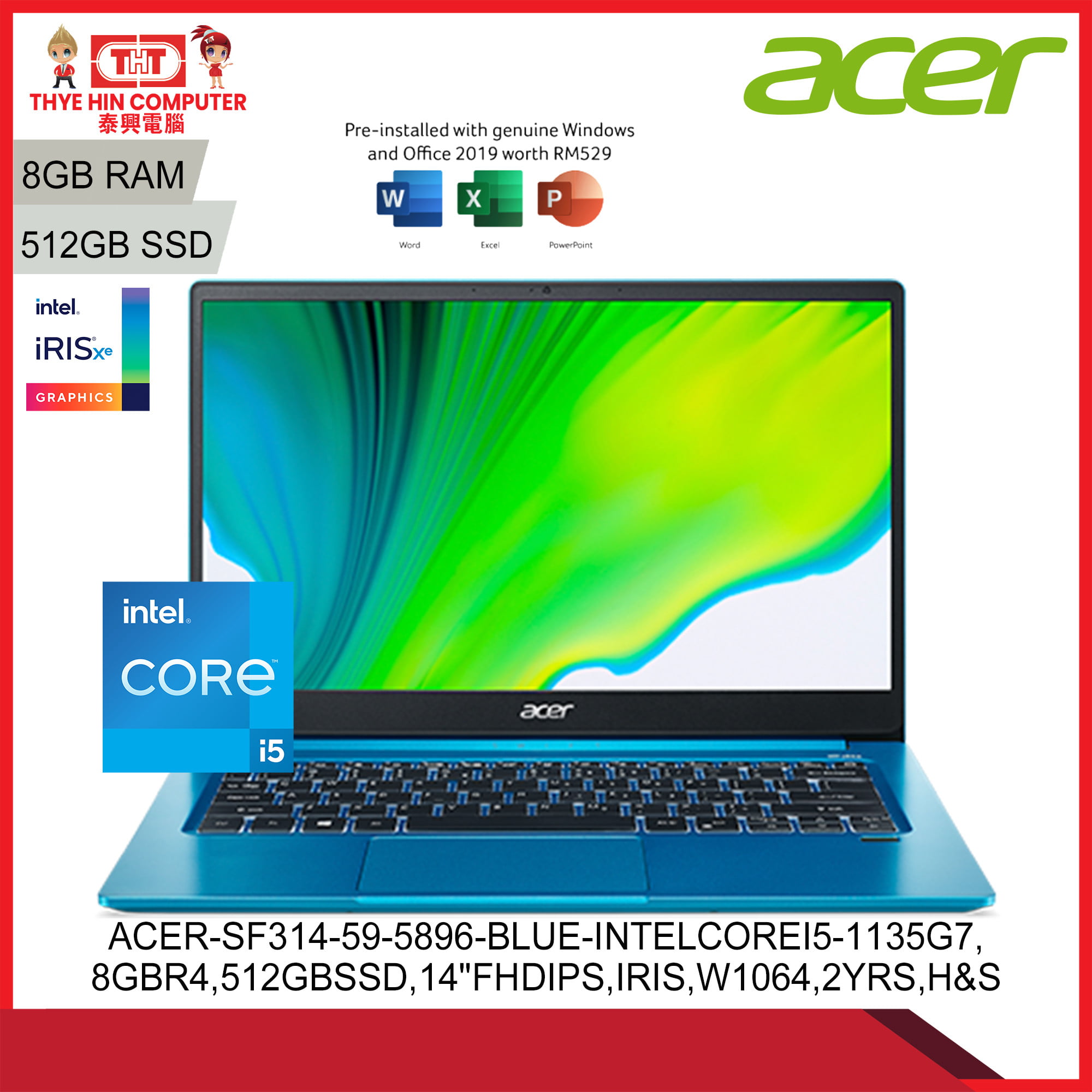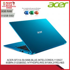 ACER-SF314-59-5896-BLUE-INTELCOREI5-1135G7,8GBR4,512GBSSD,14"FHDIPS,IRIS,W1064,2YRS,H&S