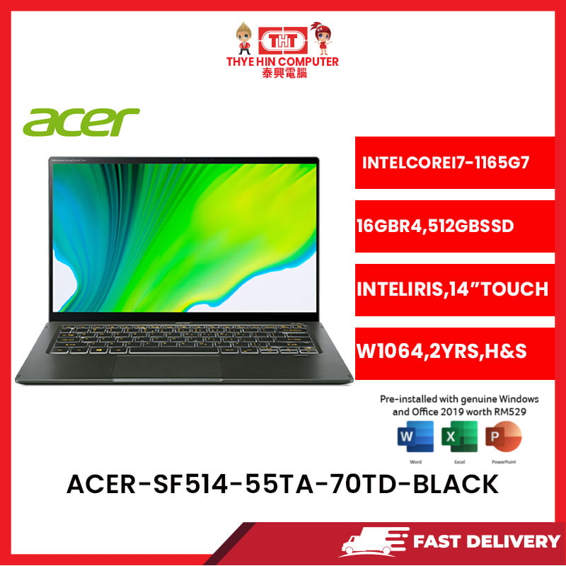 ACER-SF514-55TA-70TD-BLK-INTELCOREI7-1165G7,16GBR4,512GBSSD,14"TOUCH,W1164,2YRS,H&S