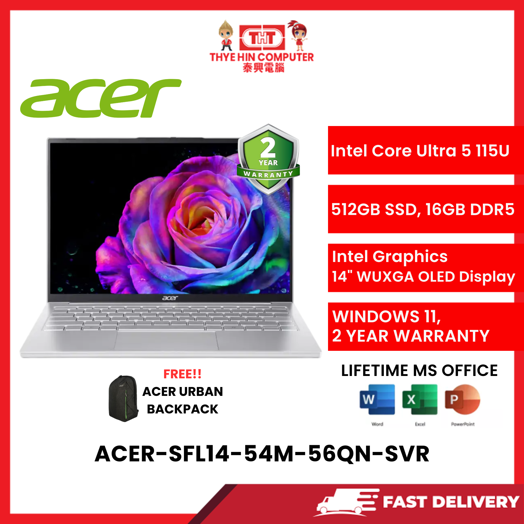 ACER-SFL14-54M-56QN-SVR-INTELCOREULTRA5-115U,16GBR5,512GBSSD,14″OLEDWUXGA,INTELHD,W1164,2YRS,H&S [SBN:NO NILAI:YES MELAKA:YES HPS:NO]