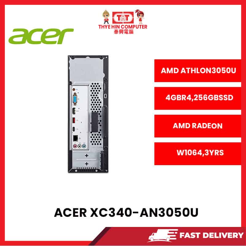 ACERXC340-AN3050U-AMDATHLON3050U,4GBR4,256GBSSD,RADEONGRAPHICS,W1064,3YRS [SBN:NO NILAI:NO MELAKA:NO HPS:NO]