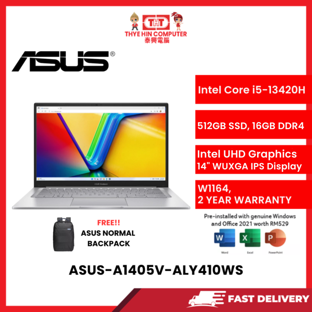 ASUS-A1405V-ALY410WS-SVR-INTELCOREI5-1,16GBR4,512GBSSD,INTELUHD,14″WUXGA,W1164,2YRS,H&S [SBN:YES NILAI:YES MELAKA:YES HPS:NO]