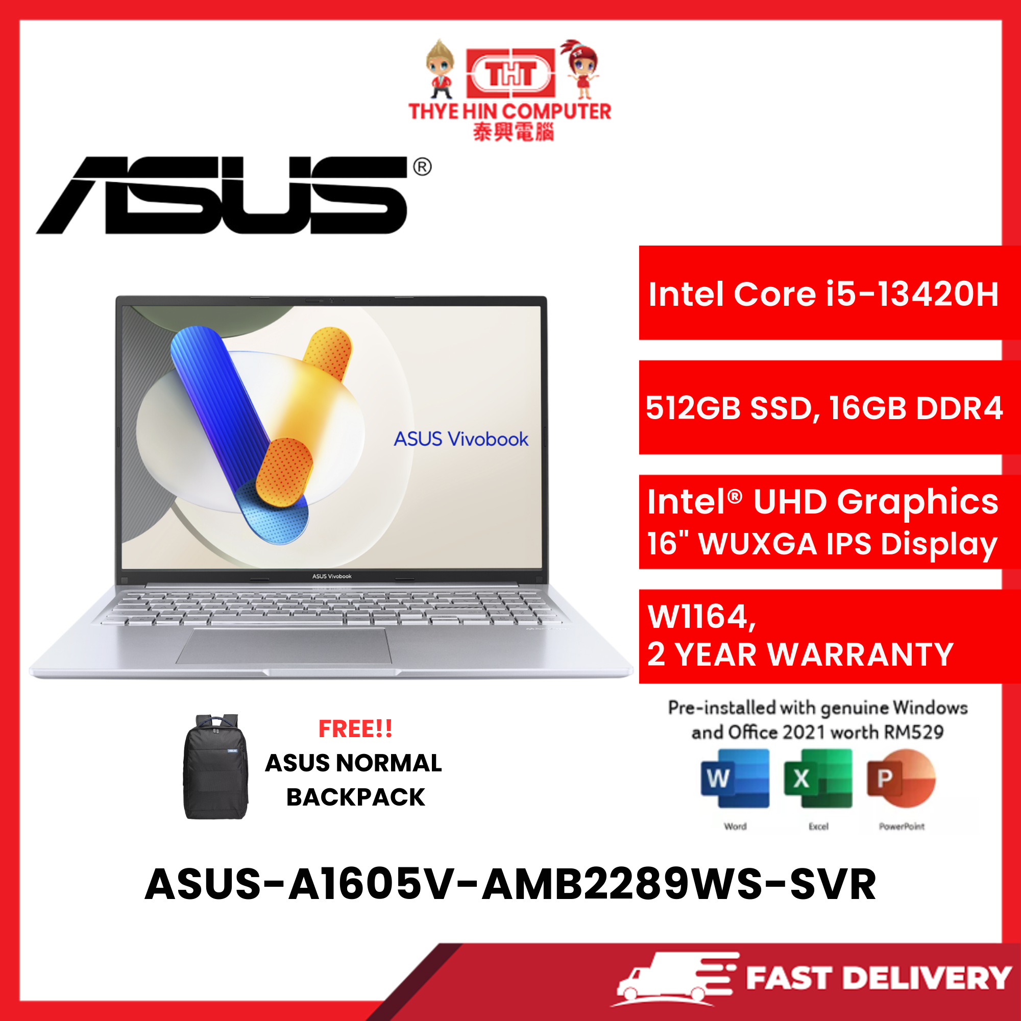 ASUS-A1605V-AMB2289WS-SVR-INTELCOREI5-13420H,16GBR4,512GBSSD,INTELUHD,16"WUXGA,W1164,2YRS,H&S
