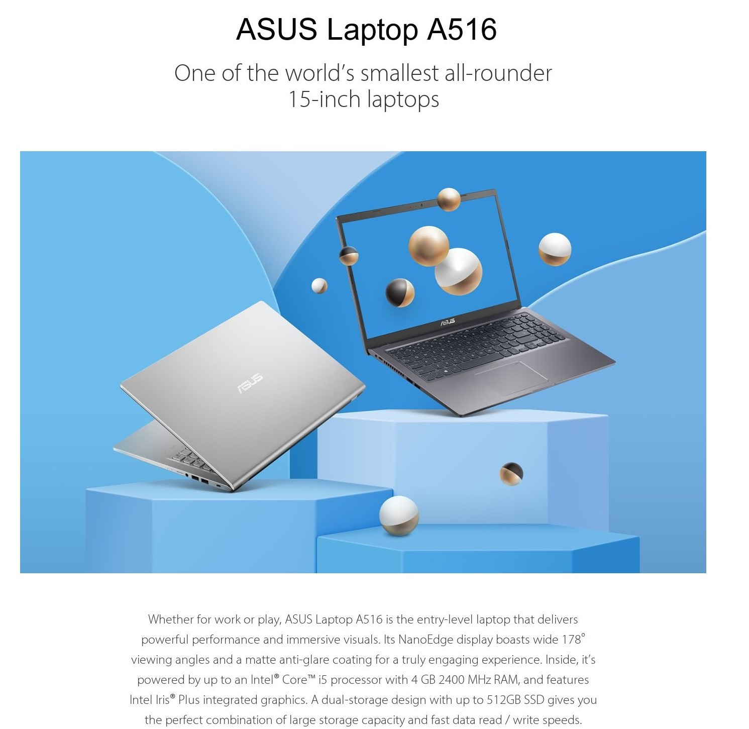 ASUS-A516E-ABQ1845WS-SVR-INTELCOREI5-1135G7,8GBR4,512GBSSD,15.6"FHD,W11H,H&S,2YRS