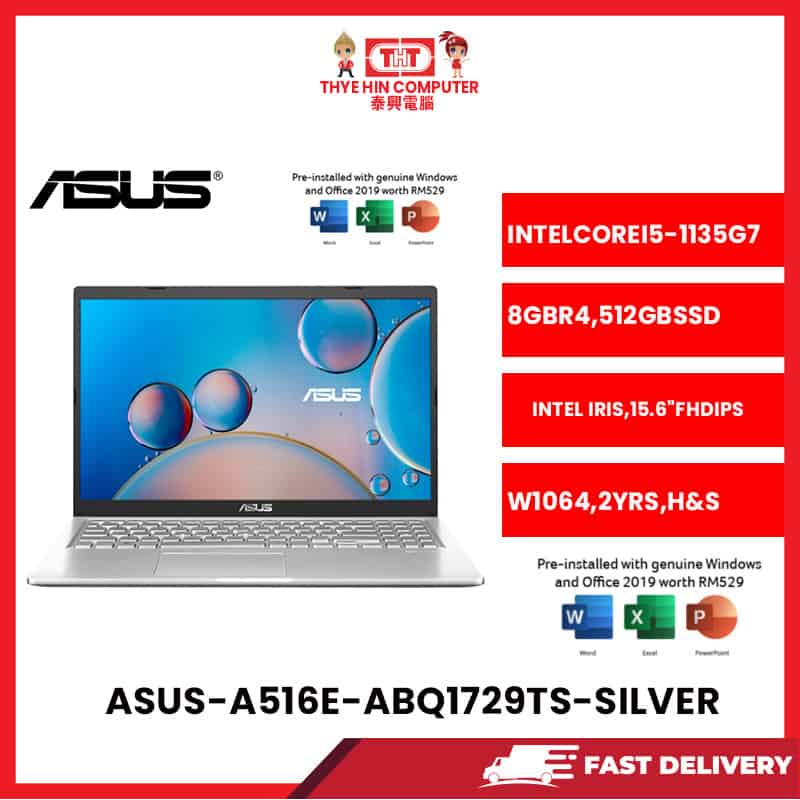 ASUS-A516E-ABR1729TS-SVR-INTELCOREI5-1135G7,8GBR4,512GBSSD,15.6″HD,W1064,2YRS,H&S [SBN:NO NILAI:NO MELAKA:NO HPS:NO]