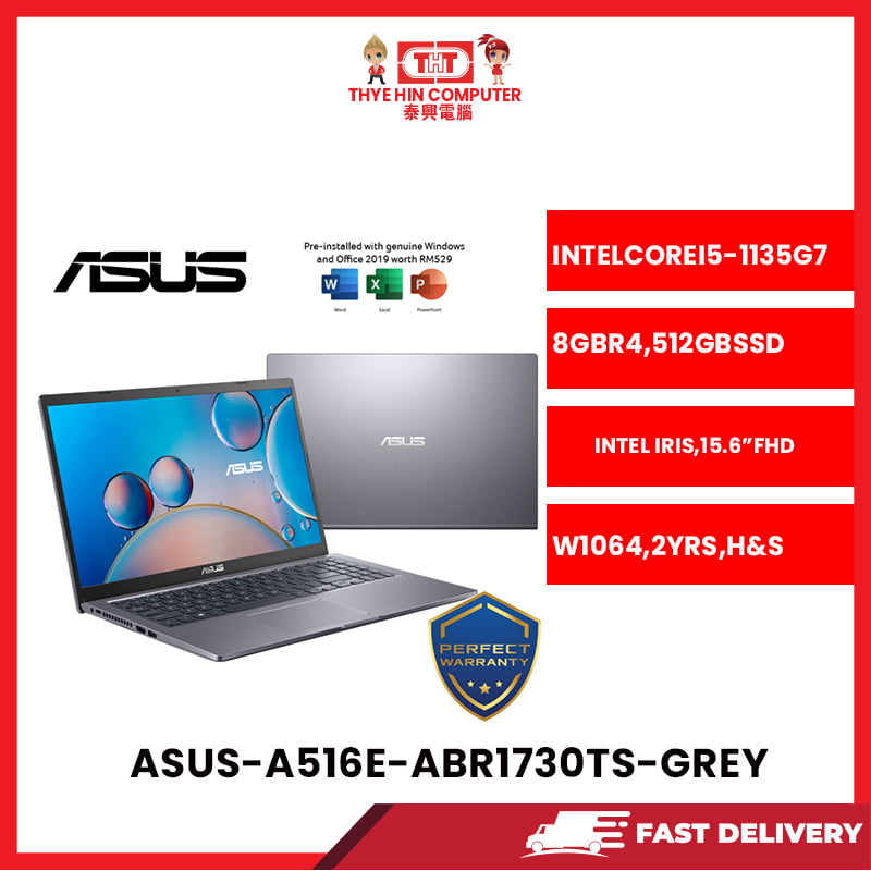ASUS-A516E-ABR1730TS-GREY-INTELCOREI5-1135G7,8GBR4,512GBSSD,15.6″HD,W1064,2YRS,H&S [SBN:NO NILAI:NO MELAKA:NO HPS:NO]