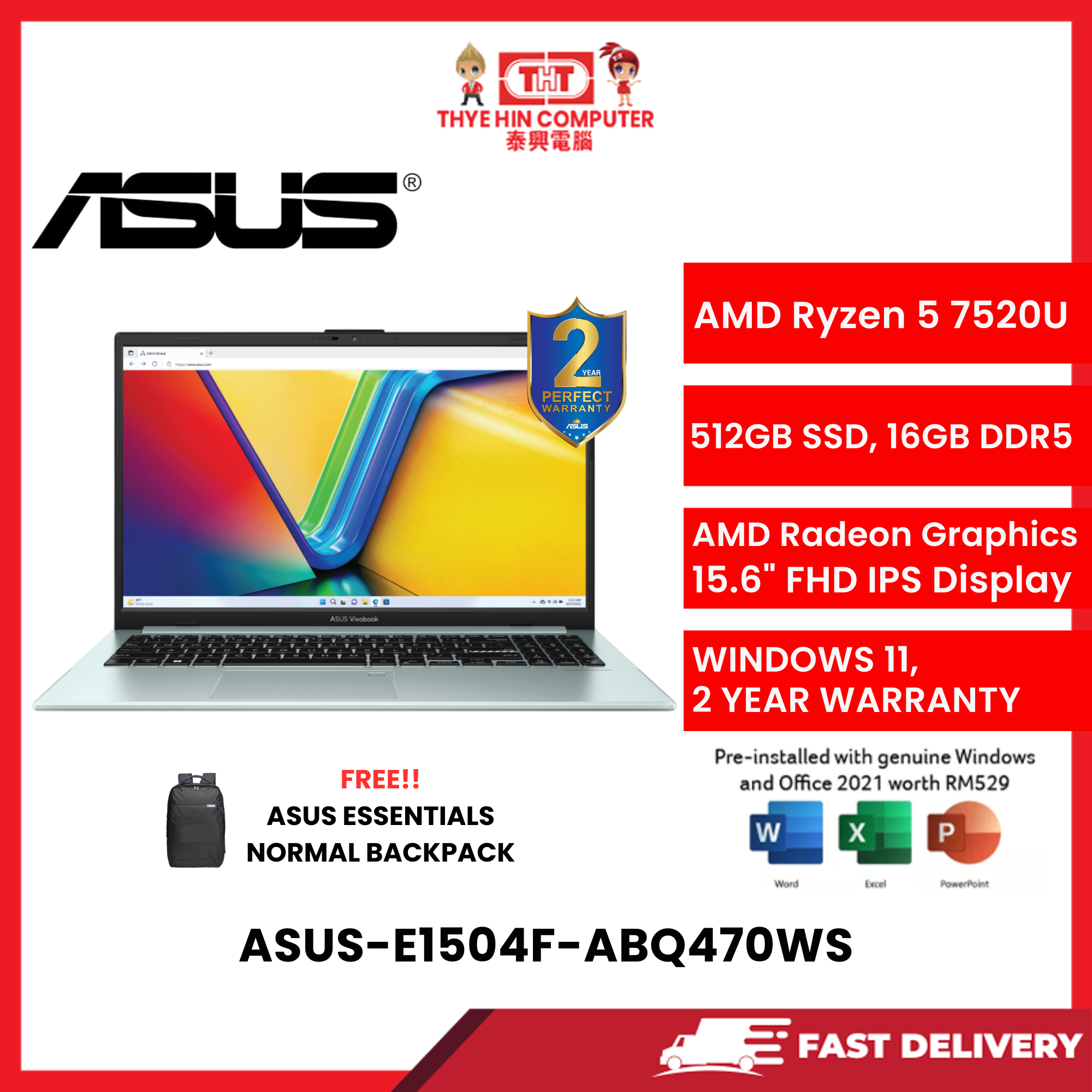 ASUS-E1504F-ABQ470WS-GREEN-AMDRYZEN5-7520U,16GBR5,512GBSSD,AMDRADEON,15.6"FHD,W1164,2YRSH&S