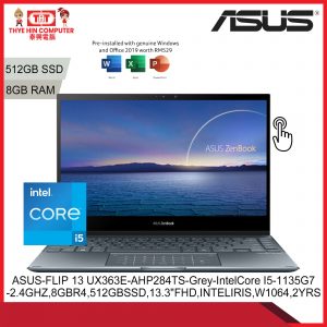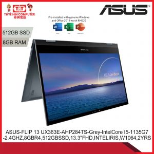 ASUS-FLIP 13 UX363E-AHP284TS-GREY-INTELCOREI5-1135G7-2.4GHZ,8GBR4,512GBSSD,13.3"FHD,INTELIRIS,W1064,2YRS