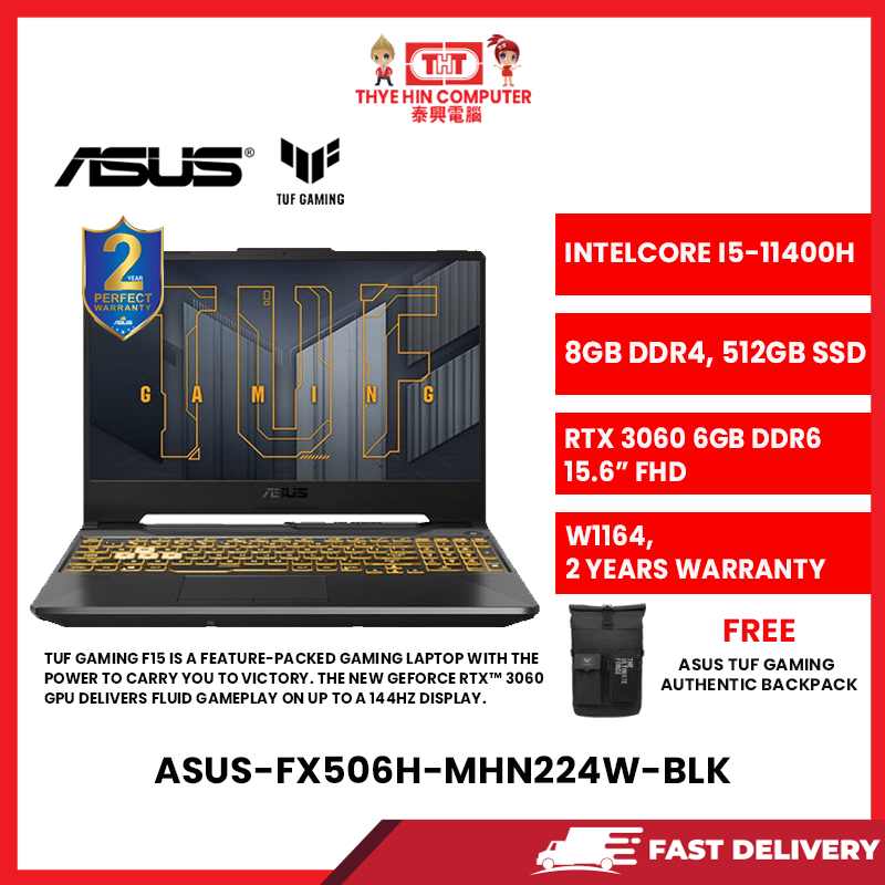 ASUS-FX506H-MHN224W-BLK-INTELCOREI5-11400H,8GBR4,512GBSSD,RTX30606GVR6,15.6"FHD,W1164,2YRS
