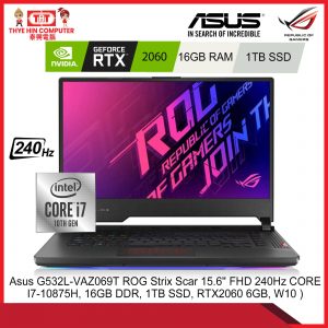 Asus G532L-VAZ069T ROG Strix Scar 15.6” FHD 240Hz Gaming Laptop ( CORE I7-10875H, 16GB DDR, 1TB SSD, RTX2060 6GB, W10 ) [SBN:NO NILAI:NO MELAKA:NO HPS:NO]