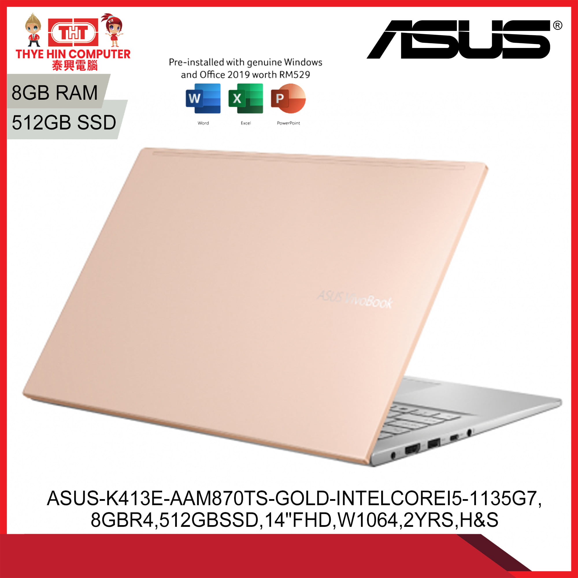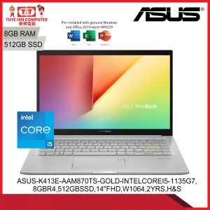 ASUS-K413E-AAM870TS-GOLD-INTELCOREI5-1135G7,8GBR4,512GBSSD,14"FHD,W1064,2YRS,H&S