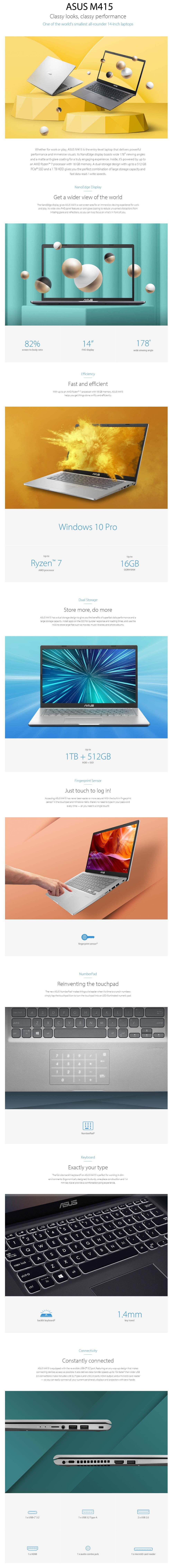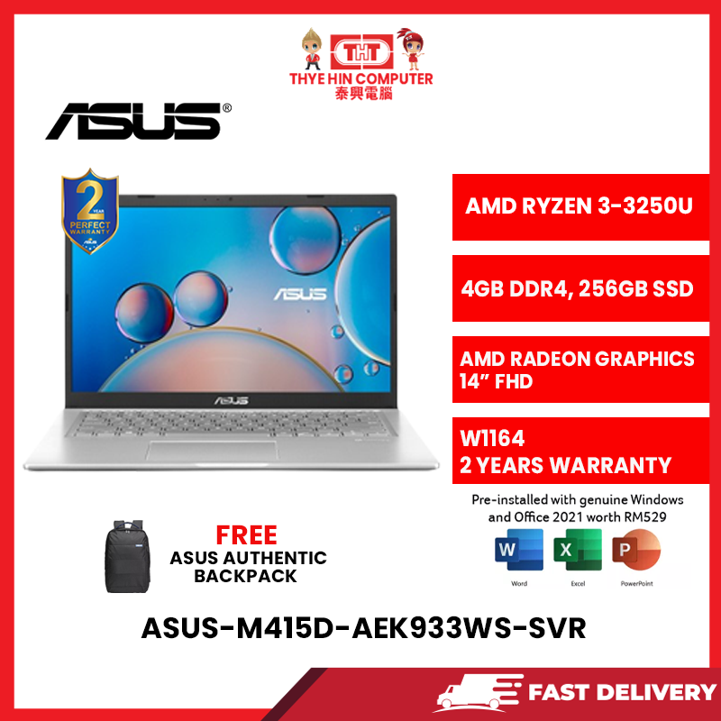 ASUS-M415D-AEK933WS-SVR-AMDRYZEN3-3250U,4GBR4,256GBSSD,AMDRADEON,14"FHD,W1164,2YRS,H&S