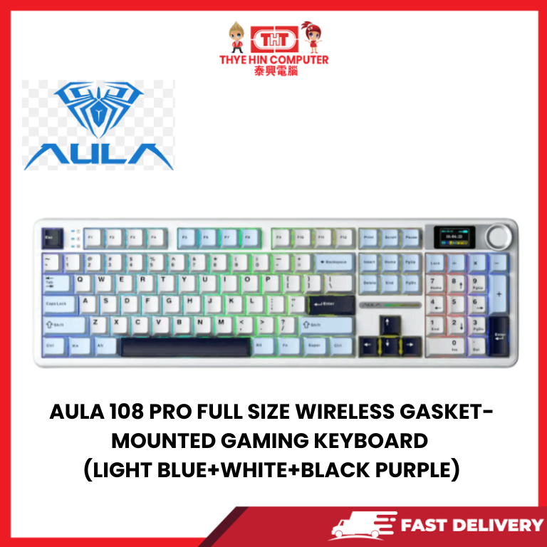 AULA 108 PRO FULL SIZE WIRELESS GASKET-MOUNTED GAMING KEYBOARD (LIGHT BLUE+WHITE+BLACK PURPLE) [SBN:NO NILAI:YES MELAKA:NO HPS:NO]