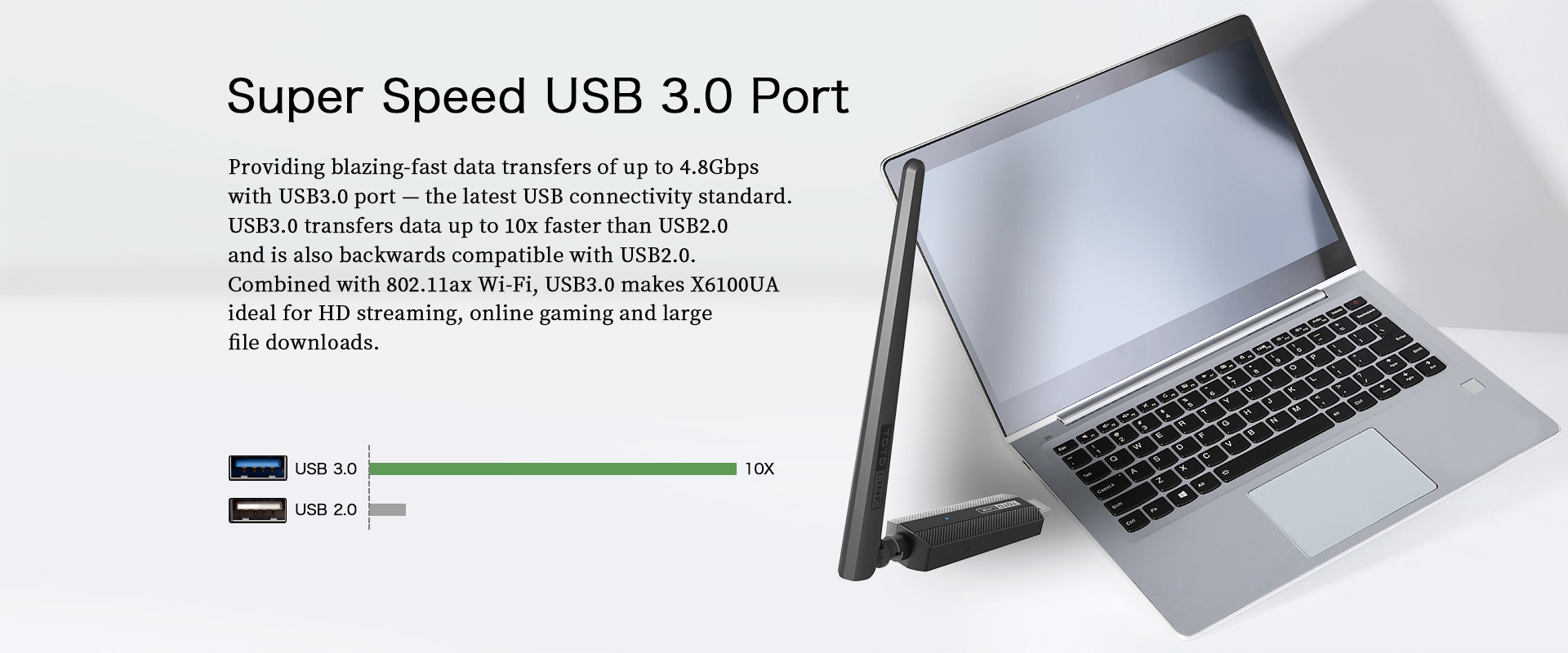 Equipped with external omni-directional antennas, X6100UA offers a higher wireless performance and expands wireless signal to a wider coverage.