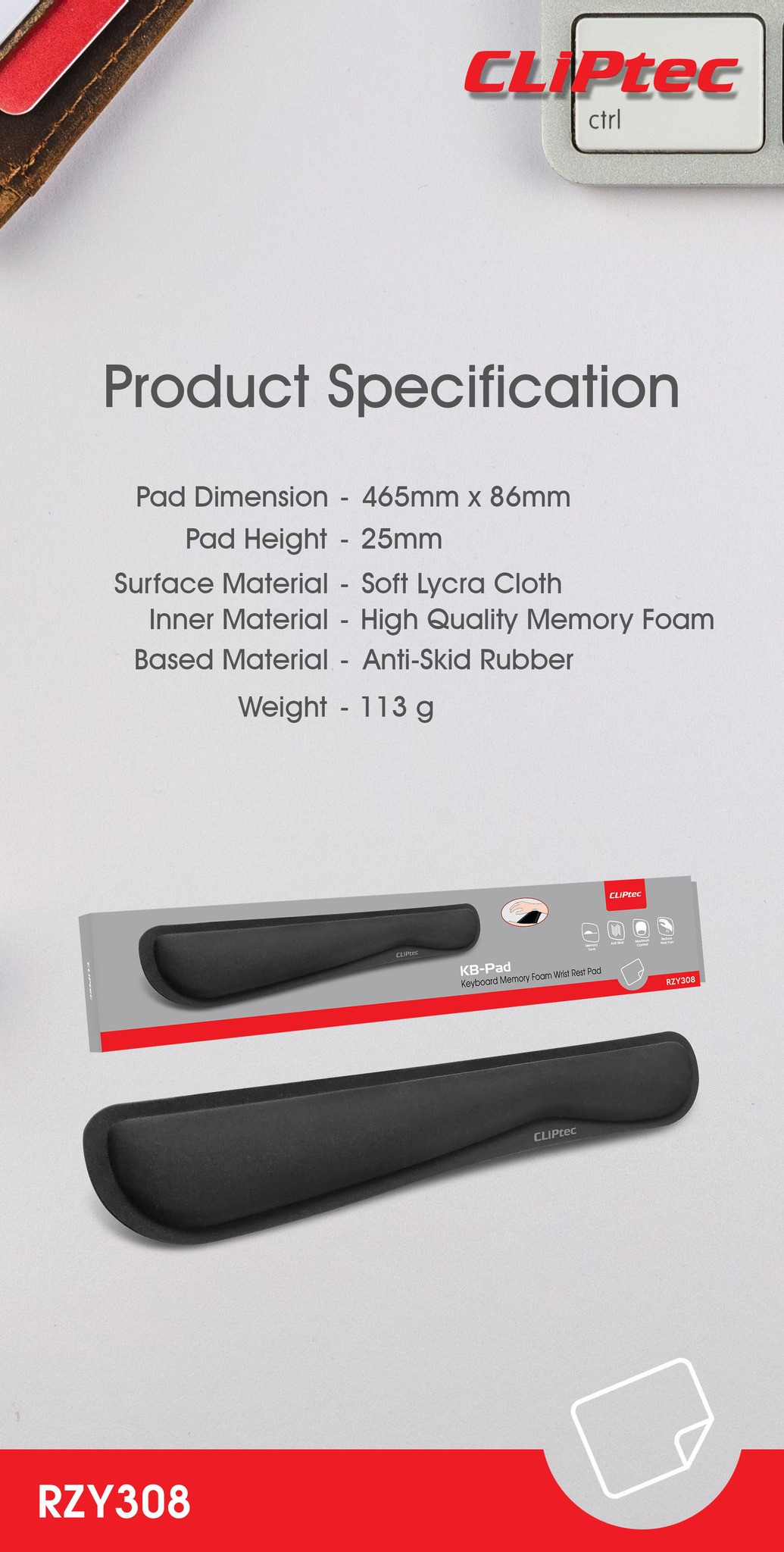 B06 CLIPTEC RZY308 WRIST REST MEMORY FOAM WRIST REST PAD [SBN:NO NILAI:NO MELAKA:NO HPS:NO]