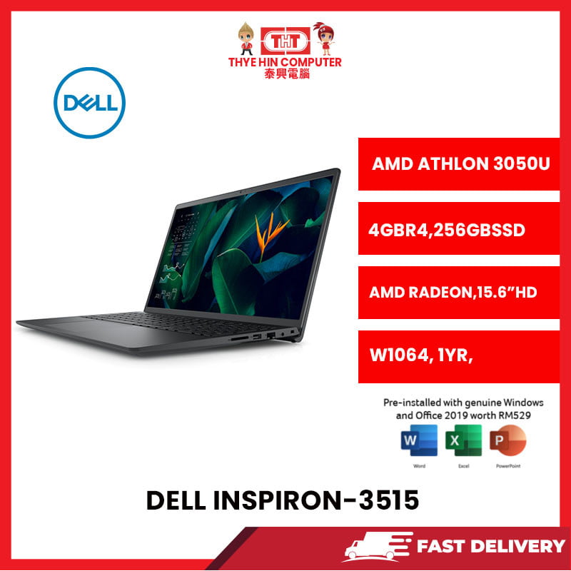DELL-INSPIRON-3515-SVR-AMDATHLON3050U,4GBR4,256GBSSD,15.6"HD,W1064,1YR,H&S