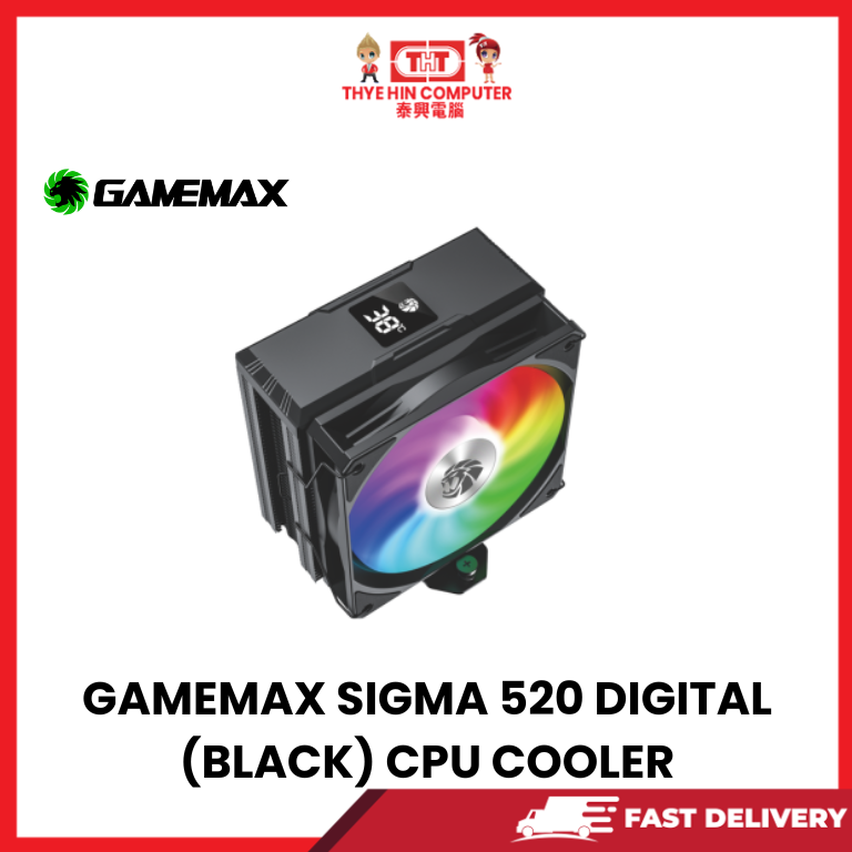 The Sigma 520 Digital is a "smart" air cooler that integrates a digital temperature display on the top plate. This allows you to monitor your CPU’s core temperature at a glance without needing to open on-screen software. It features a sleek, all-black "oil-injected" finish and synchronized ARGB lighting.