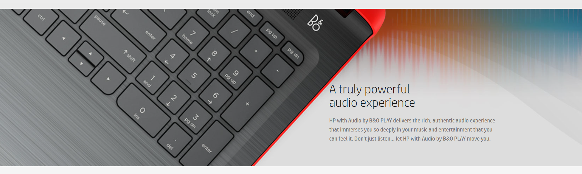 | Audio and Speakers | Audio by B&O; Dual speakers; HP Audio Boost |