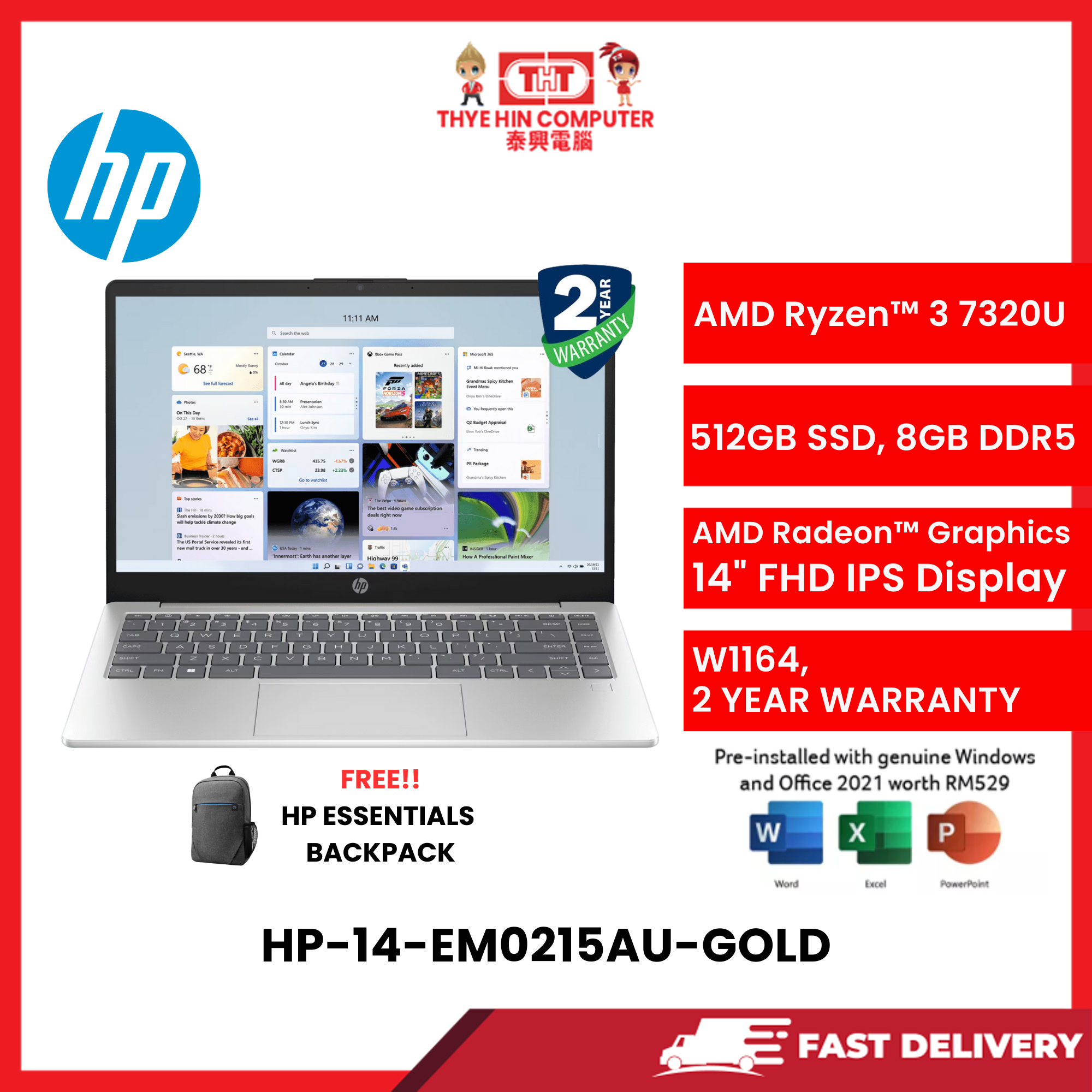 HP-14-EM0215AU-GOLD-AMDRYZEN3-7320U,8GBR5(OB),512GBSSD,AMDRADEON,14"FHD,W1164,2YRS,H&S