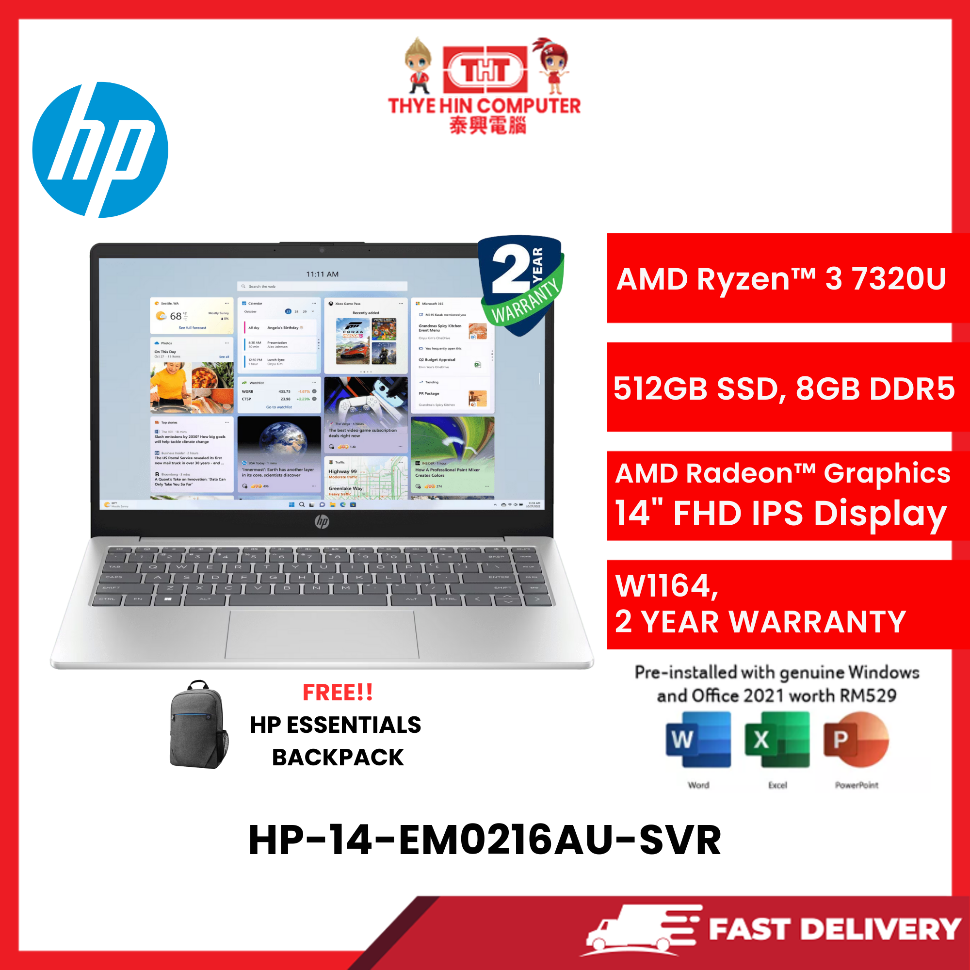 HP-14-EM0216AU-SVR-AMDRYZEN3-7320U,8GBR5(OB),512GBSSD,AMDRADEON,14"FHD,W1164,2YRS,H&S