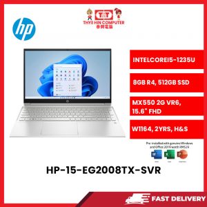 HP-15-EG2008TX-SVR-INTELCOREI5-1235U,8GBR4,512GBSSD,MX5502GVR6,15.6"FHD,W1164,2YRS,H&S