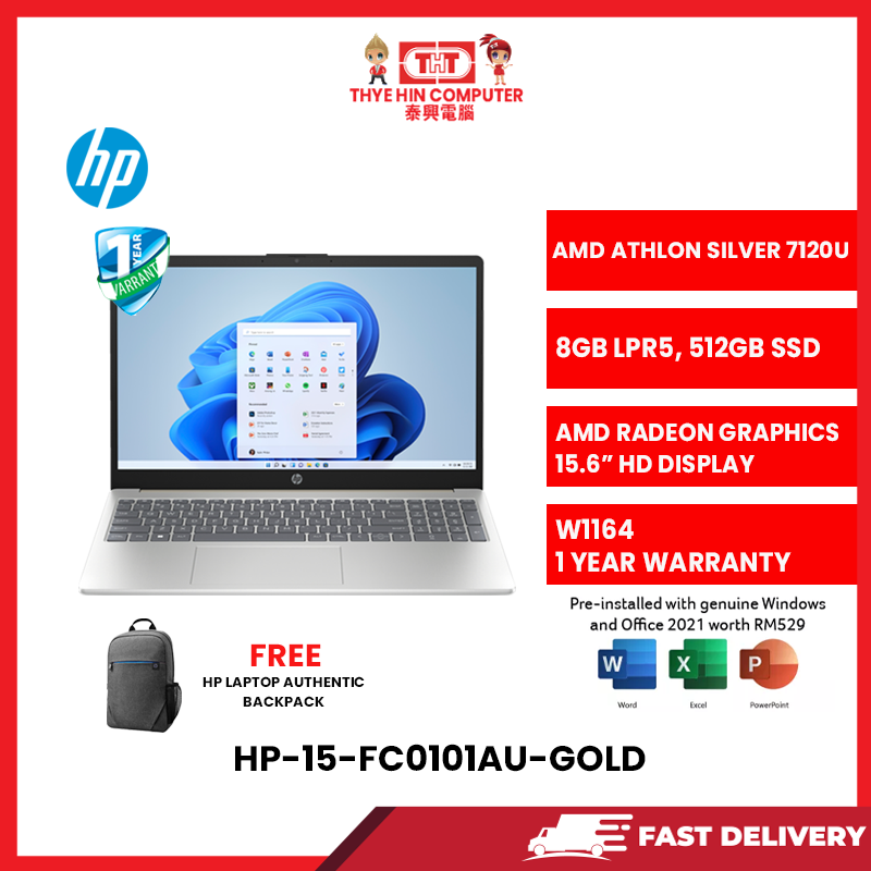 HP-15-FC0101AU-GOLD-AMDATHLON-7120U,8GBR5,512GBSSD,15.6"HD,AMDRADEON,W1164,H&S,1YR