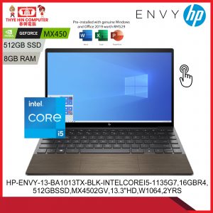 HP-ENVY-13-BA1013TX-BLK-INTELCOREI5-1135G7,16GBR4,512GBSSD,MX4502GV,13.3"HD,W1064,2YRS