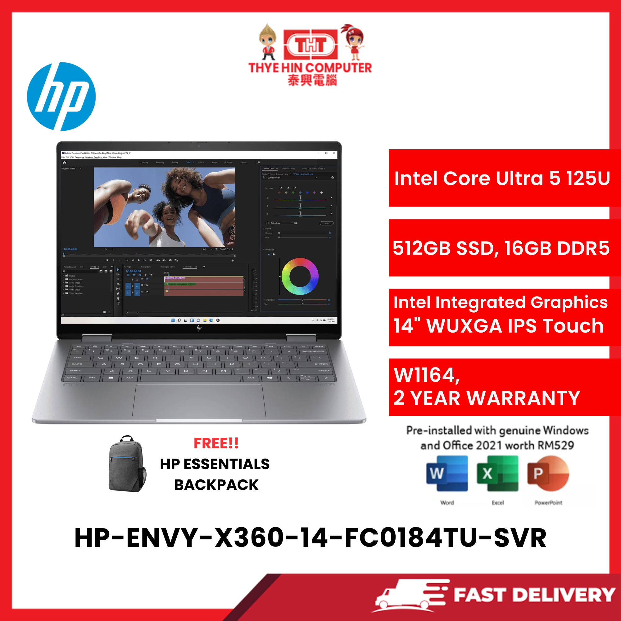 HP-ENVY-X360-14-FC0184TU-SVR-INTELCOREULTRA5-125U,16GBR5,512GBSSD,14"WUXGATOUCH,W1164,2YRS,H&S