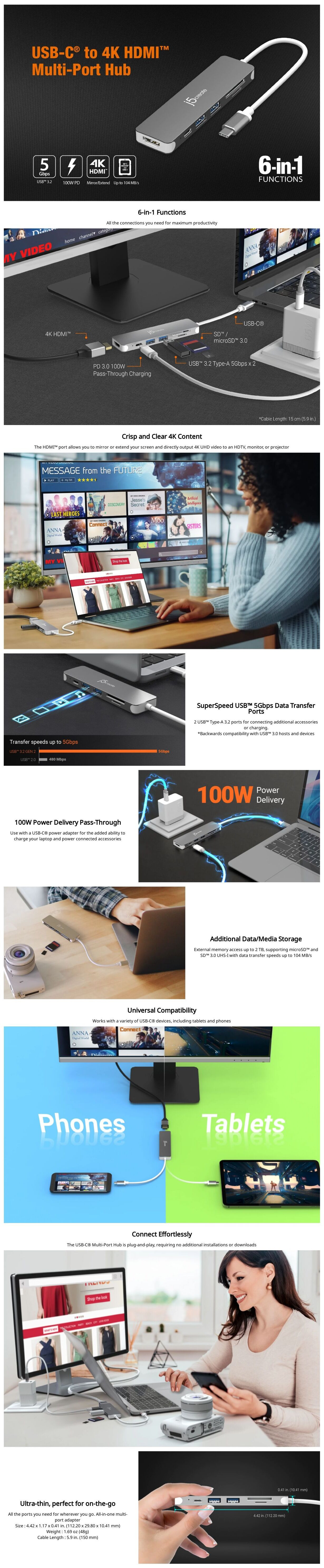 JCD353 USB-C TO 4K HDMI MULTI-PORT HUB