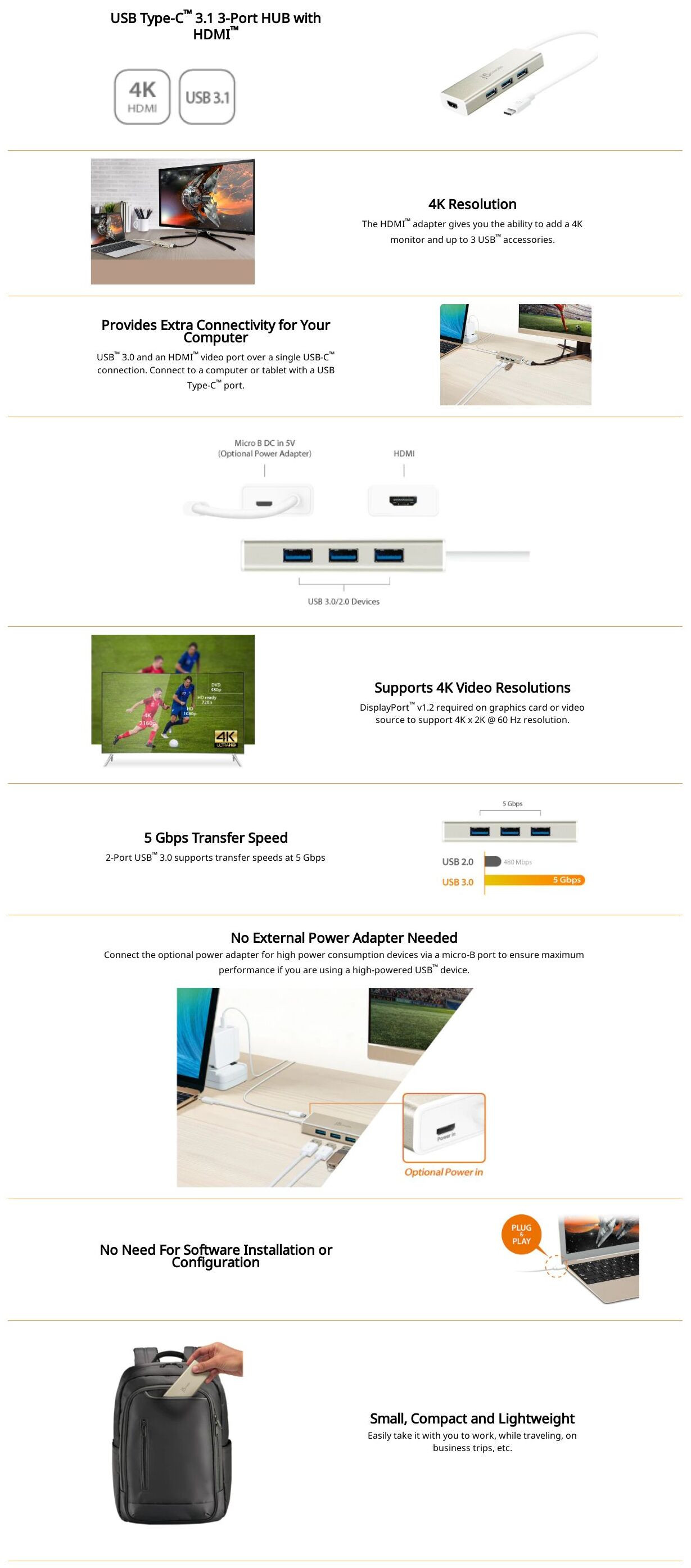 JCH451 USB-C™ 3.1 3-Port USB™ 3.0 HUB & 4K HDMI™