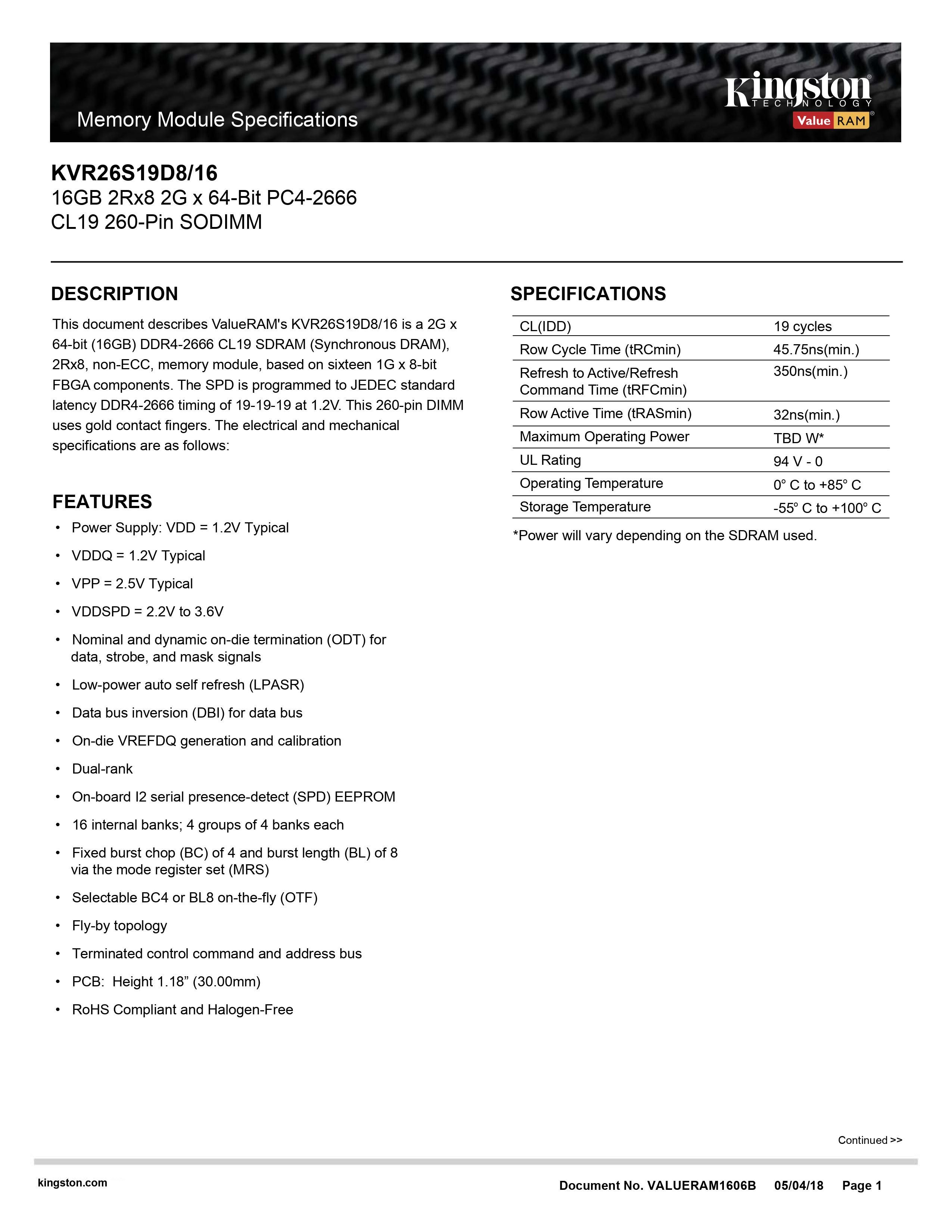 KINGSTON 16GB DDR4 2666MHZ NOTEBOOK RAM KVR26S19D8/16 [SBN:NO NILAI:NO MELAKA:NO HPS:NO]