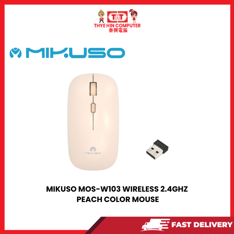The MIKUSO MOS-W103 Wireless 2.4GHz Peach Color Mouse is a compact and stylish mouse designed for everyday use.