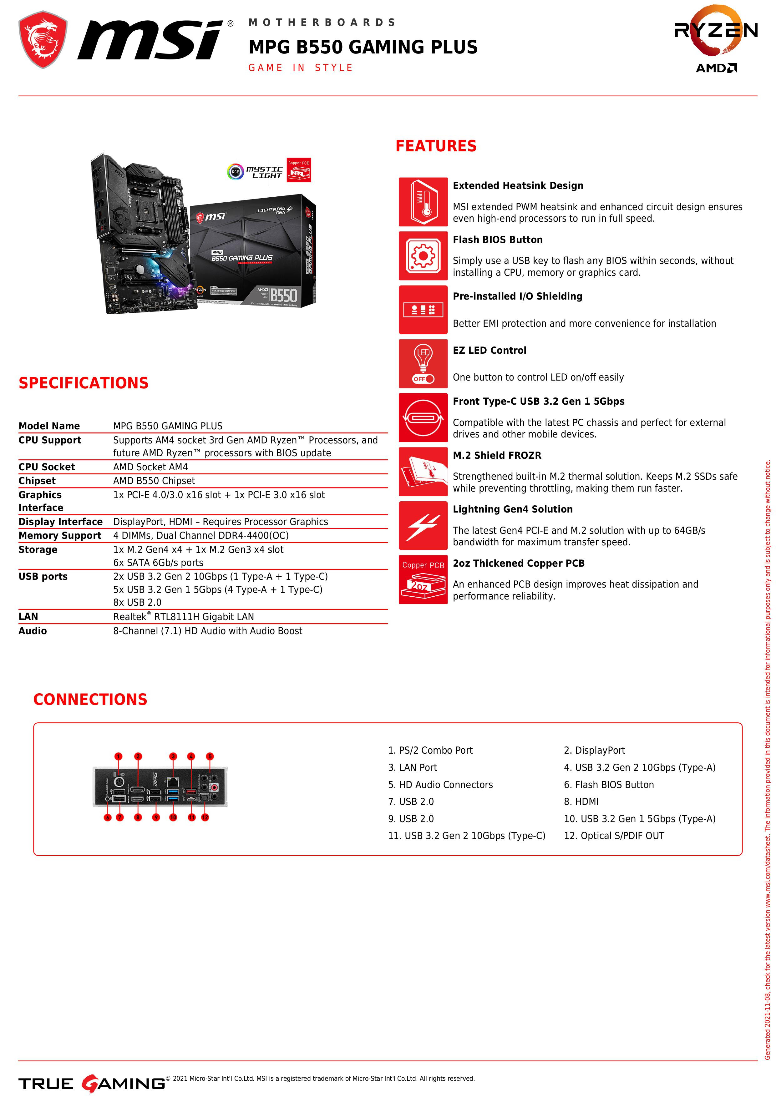 - USB 3.2 PORTS (REAR) : 1(Gen 2, Type C), 1(Gen 2, Type A), 2(Gen 1, Type A)