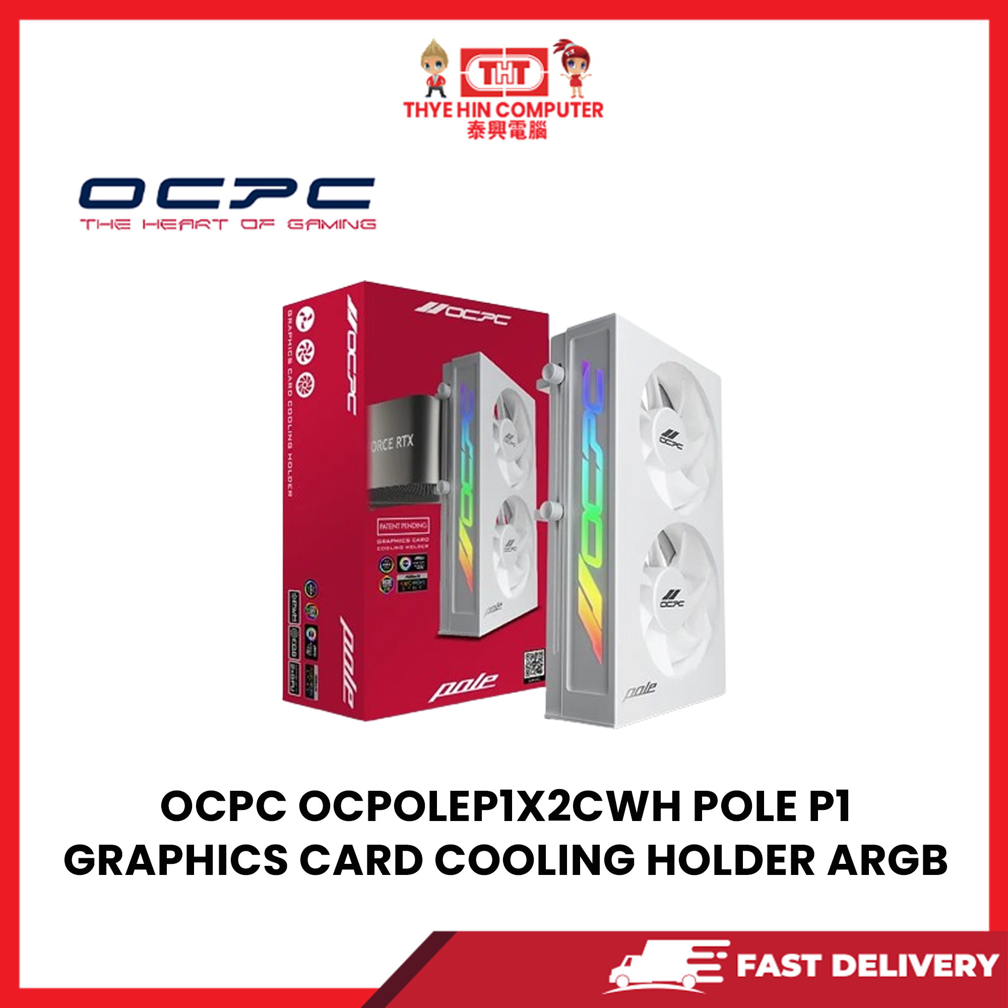 OCPC OCPOLEP1X2CWH POLE P1 GRAPHICS CARD COOLING HOLDER ARGB