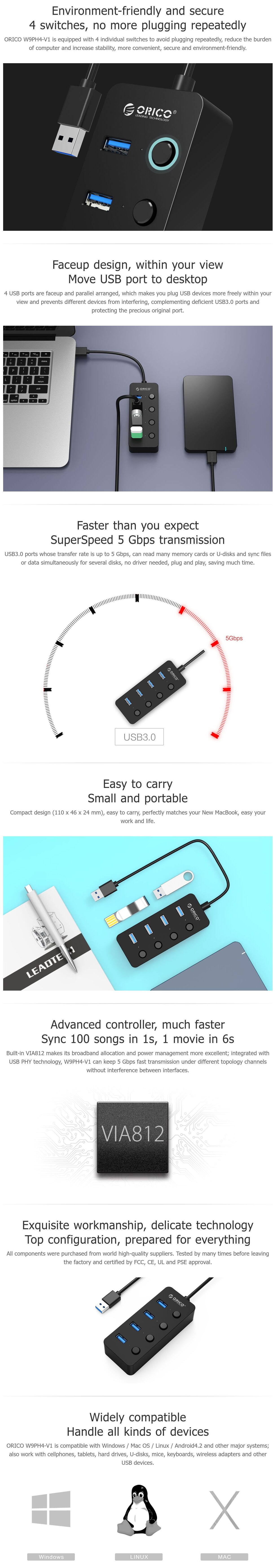 ORICO W9PH4-U3 PORTABLE USB 3.0 HUB WITH POWER SWITCH