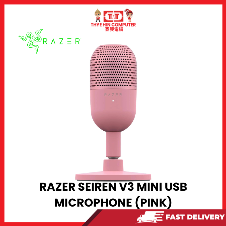 The Razer Seiren V3 Mini in Pink is a compact USB microphone designed for clear and professional voice recording. It’s ideal for gaming, streaming, podcasting, online meetings, and content creation. The microphone uses a focused pickup pattern that captures your voice clearly while reducing background noise like keyboard clicks and room sounds.