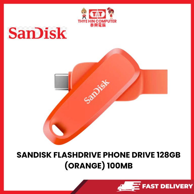SANDISK FLASHDRIVE PHONE DRIVE 128GB (ORANGE) 100MB [SBN:YES NILAI:NO MELAKA:NO HPS:NO]