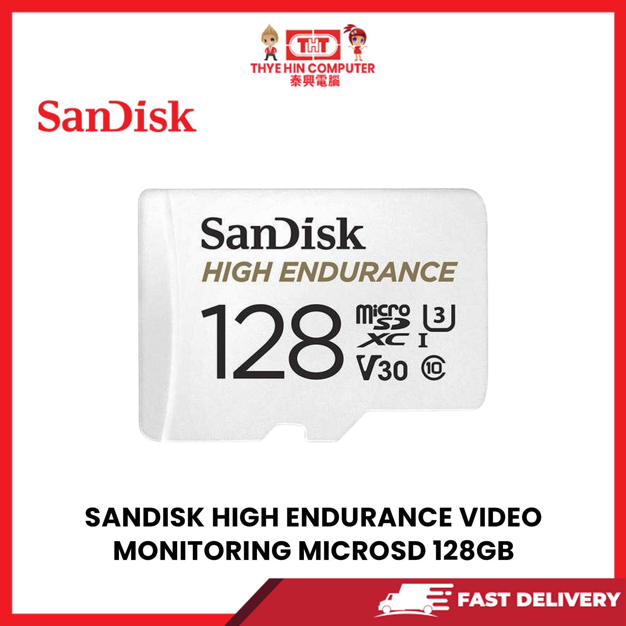 SANDISK HIGH ENDURANCE VIDEO MONITORING MICROSD 128G UHS-I,C10,U3,V30