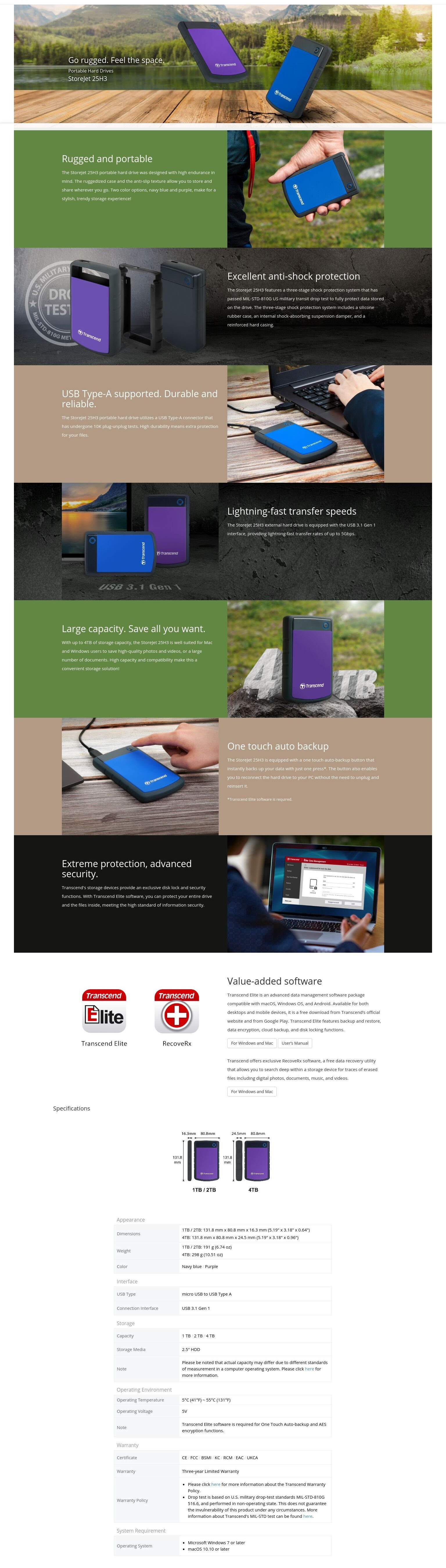 TRANSCEND STOREJET 25H3P 1TB USB 3.0 SATA HARDISK