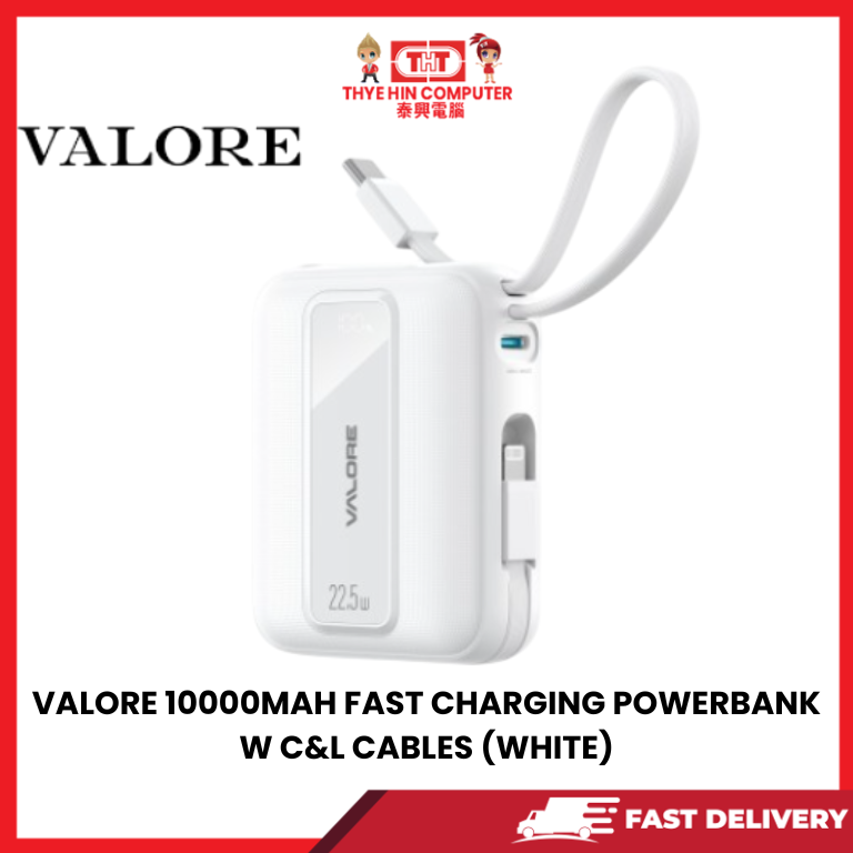 VALORE 10000MAH FAST CHARGING POWERBANK W C&L CABLES (WHITE) [SBN:YES NILAI:NO MELAKA:NO HPS:NO]