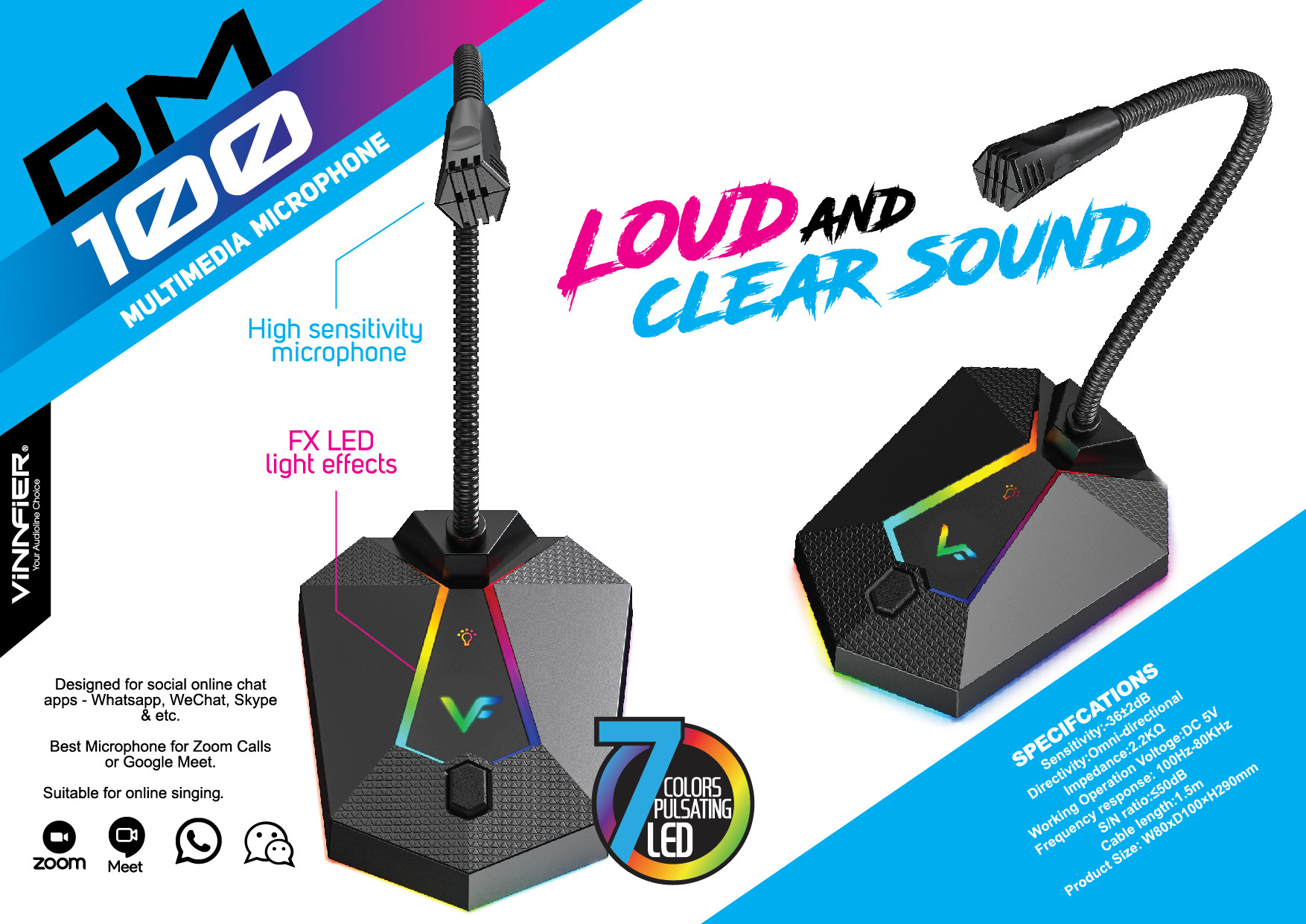 DM 100 Multimedia Microphone Suitable Online Singing Whatsapp WeChat Skype Social Media Zoom Call Google Meet.