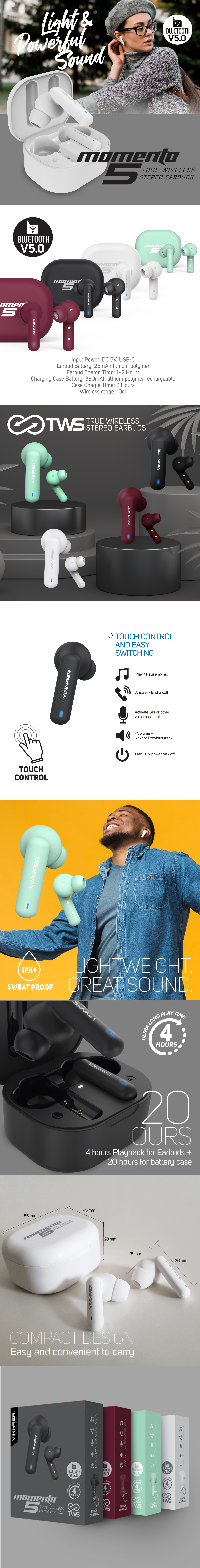 VINNIFIER MOMENTO-5 TWS TRUE WIRELESS STEREO EARBUDS [SBN:NO NILAI:YES MELAKA:NO HPS:NO]